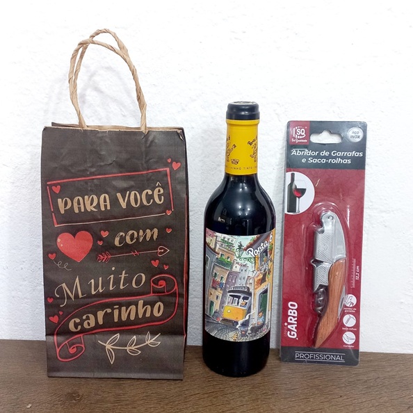 [Pronto Para Presentear] Porta 6 Meia Garrafa + Abridor Profissional + Sacola Kraft Mini